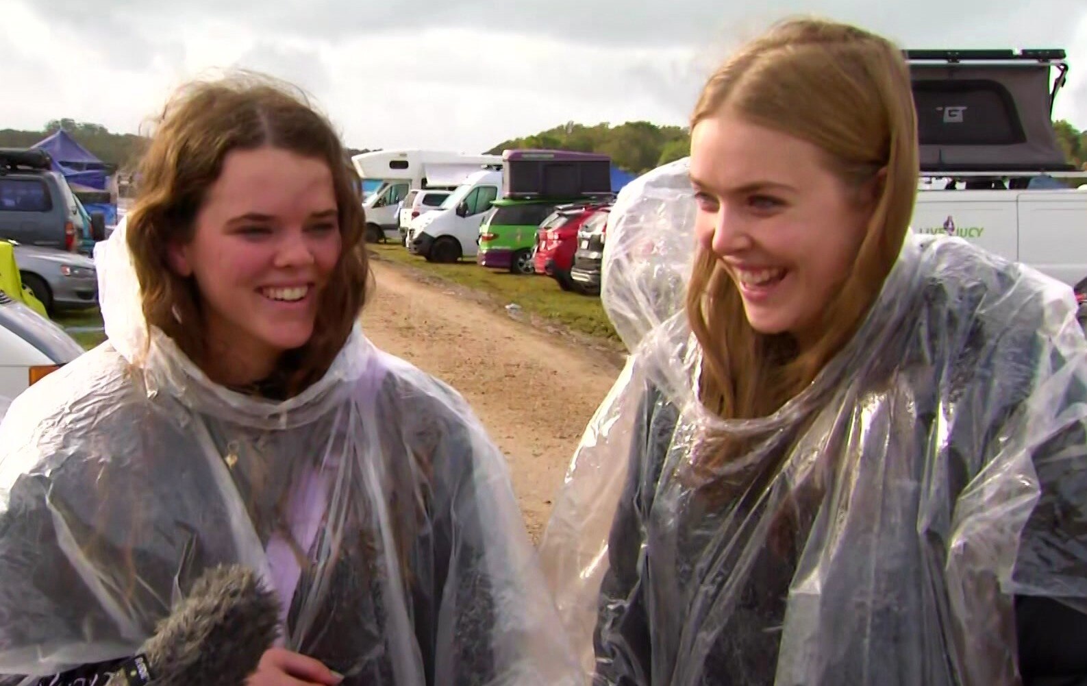Juliette and Brianna Low were trying to snag some gumboots to deal with the mud.