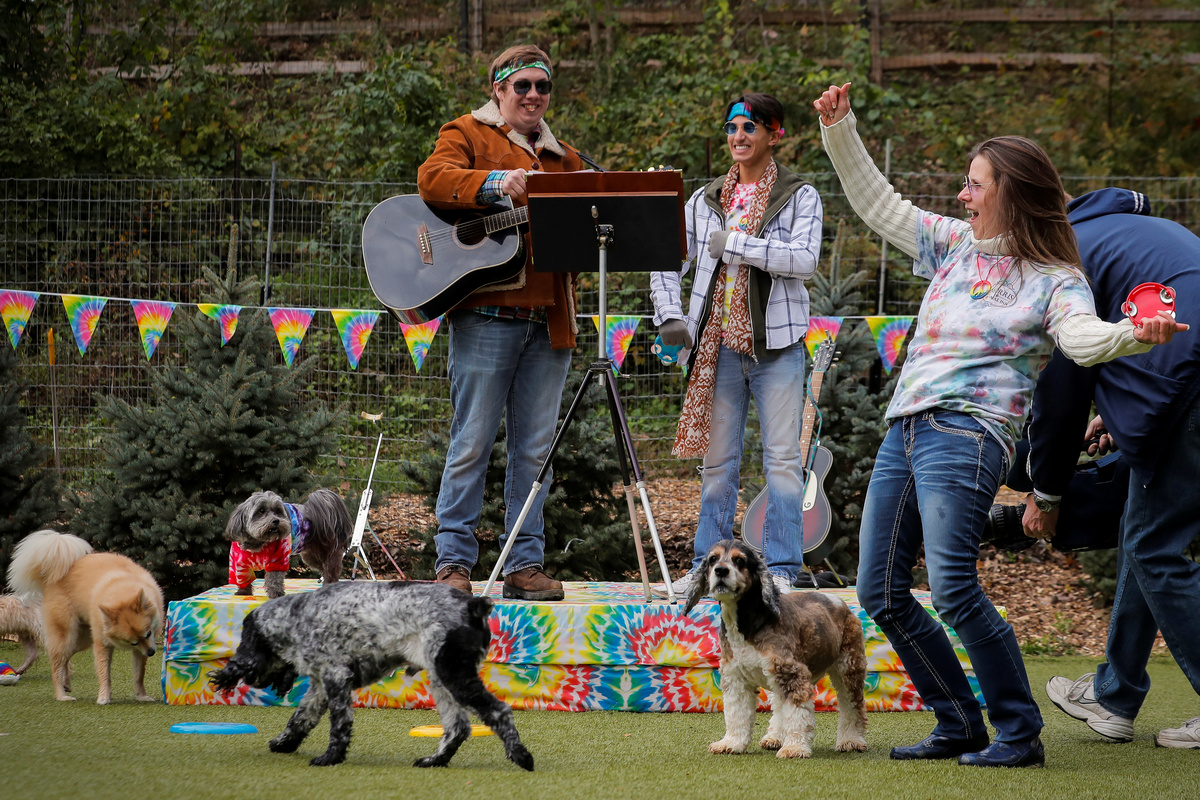 At Wuffstock, Harry posed for his Psychedelic Photo Booth souvenir, munched on "groovy granola" treats and barked at his buddies bobbing for apples at the filled-to-capacity Halloween bash. Previous themes have been Muttster Mash, Game of Bones and Ghostpupsters, said third-generation owner Joanne Morris.