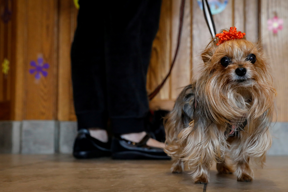 Lisa Burke, 53, a development consultant from New Vernon, New Jersey with two college-aged sons, hugged Agatha, a 2-year-old Golden Retriever, before she scampered off for the four-legged festivities.