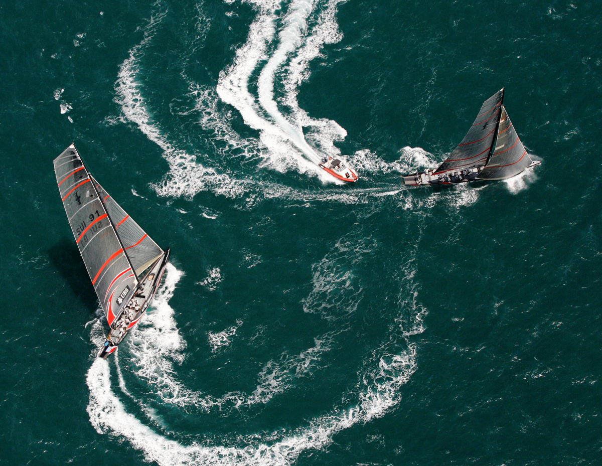 YACHTING - America's Cup defender Alinghi practises ahead of the 32nd America's Cup race against Emirates Team New Zealand in Valencia.