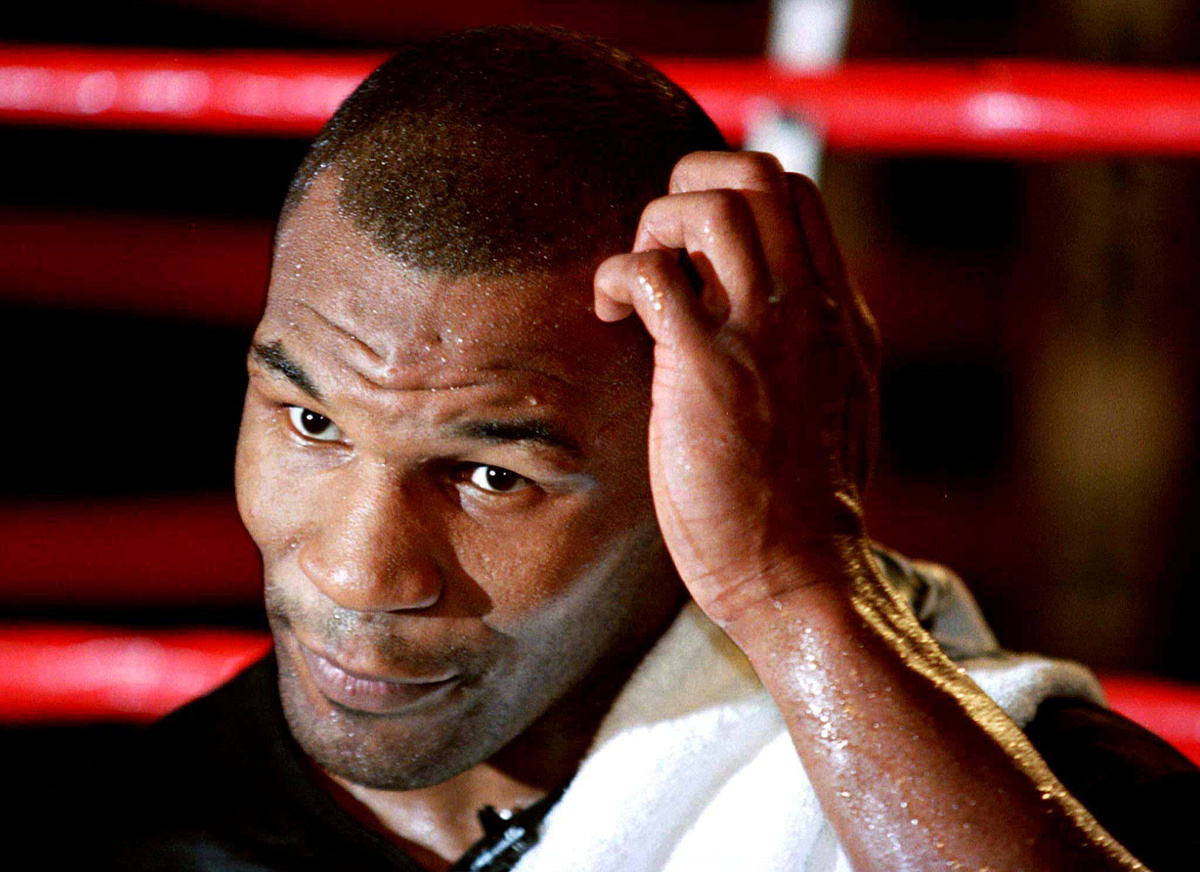 BOXING - Mike Tyson takes questions during a press conference at the MGM Grand Hotel in Las Vegas ahead of his WBA heavyweight title rematch against Evander Holyfield.
