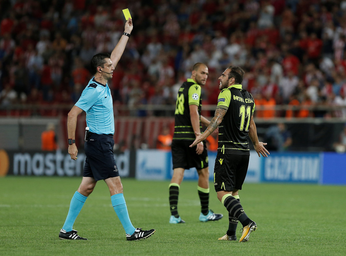 Soccer Football - Champions League - Olympiacos vs Sporting CP - Karaiskakis Stadium, Piraeus, Greece - September 12, 2017 Olympiakos' Filipe Pardo celebrates scoring their second goal REUTERS/Alkis KonstantinidisSoccer Football - Champions League - Olympiacos vs Sporting CP - Karaiskakis Stadium, Piraeus, Greece - September 12, 2017 Sporting’s Bruno Cesar is shown a yellow card by referee Viktor Kassai REUTERS/Costas BaltasSoccer Football - Champions League - Olympiacos vs Sporting CP - Karaiskakis Stadium, Piraeus, Greece - September 12, 2017 Sporting’s Seydou Doumbia reacts REUTERS/Alkis KonstantinidisSoccer Football - Champions League - Olympiacos vs Sporting CP - Karaiskakis Stadium, Piraeus, Greece - September 12, 2017 Olympiakos' Filipe Pardo celebrates scoring their first goal REUTERS/Alkis KonstantinidisSoccer Football - Champions League - Olympiacos vs Sporting CP - Karaiskakis Stadium, Piraeus, Greece - September 12, 2017 Sporting coach Jorge Jesus REUTERS/Alkis KonstantinidisSoccer Football - Champions League - Olympiacos vs Sporting CP - Karaiskakis Stadium, Piraeus, Greece - September 12, 2017 Sporting’s Bruno Fernandes celebrates with teammates after scoring their third goal REUTERS/Alkis KonstantinidisSoccer Football - Champions League - Olympiacos vs Sporting CP - Karaiskakis Stadium, Piraeus, Greece - September 12, 2017 Sporting’s Bruno Fernandes celebrates after scoring their third goal REUTERS/Alkis KonstantinidisSoccer Football - Champions League - Olympiacos vs Sporting CP - Karaiskakis Stadium, Piraeus, Greece - September 12, 2017 Olympiakos' Marko Marin in action with Sporting’s Cristiano Piccini and Sebastian Coates REUTERS/Costas BaltasSoccer Football - Champions League - Olympiacos vs Sporting CP - Karaiskakis Stadium, Piraeus, Greece - September 12, 2017 Olympiacos team group before the match REUTERS/Costas BaltasSoccer Football - Champions League - Olympiacos vs Sporting CP - Karaiskakis Stadium, Piraeus, Greece - September 12, 2017 Sporting’s Cristiano Piccini in action with Olympiakos' Marko Marin REUTERS/Costas BaltasSoccer Football - Champions League - Olympiacos vs Sporting CP - Karaiskakis Stadium, Piraeus, Greece - September 12, 2017 Olympiacos coach Besnik Hasi REUTERS/Costas BaltasSoccer Football - Champions League - Olympiacos vs Sporting CP - Karaiskakis Stadium, Piraeus, Greece - September 12, 2017 Olympiakos' Uros Djurdjevic shoots at goal REUTERS/Alkis KonstantinidisSoccer Football - Champions League - Olympiacos vs Sporting CP - Karaiskakis Stadium, Piraeus, Greece - September 12, 2017 Olympiakos' Mehdi Carcela-Gonzalez in action with Sporting’s Jonathan Silva REUTERS/Alkis KonstantinidisSoccer Football - Champions League - Olympiacos vs Sporting CP - Karaiskakis Stadium, Piraeus, Greece - September 12, 2017 Sporting’s Gelson Martins celebrates scoring their second goal REUTERS/Alkis KonstantinidisSoccer Football - Champions League - Olympiacos vs Sporting CP - Karaiskakis Stadium, Piraeus, Greece - September 12, 2017 Sporting’s Bas Dost during the warm up before the match REUTERS/Alkis Konstantinidis