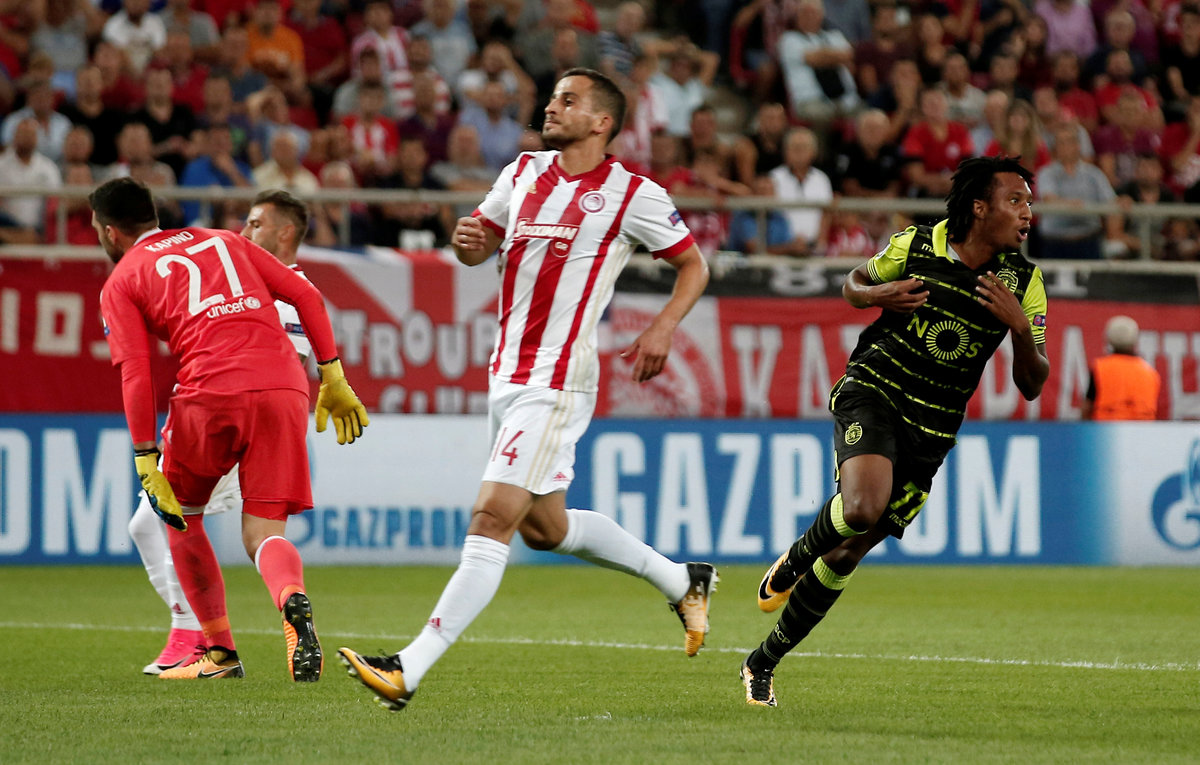 Sporting quickly made it 2-0 in a counter-attack after an Olympiakos corner, with Gelson beating goalkeeper Stefanos Kapino amid jeering by the home fans.