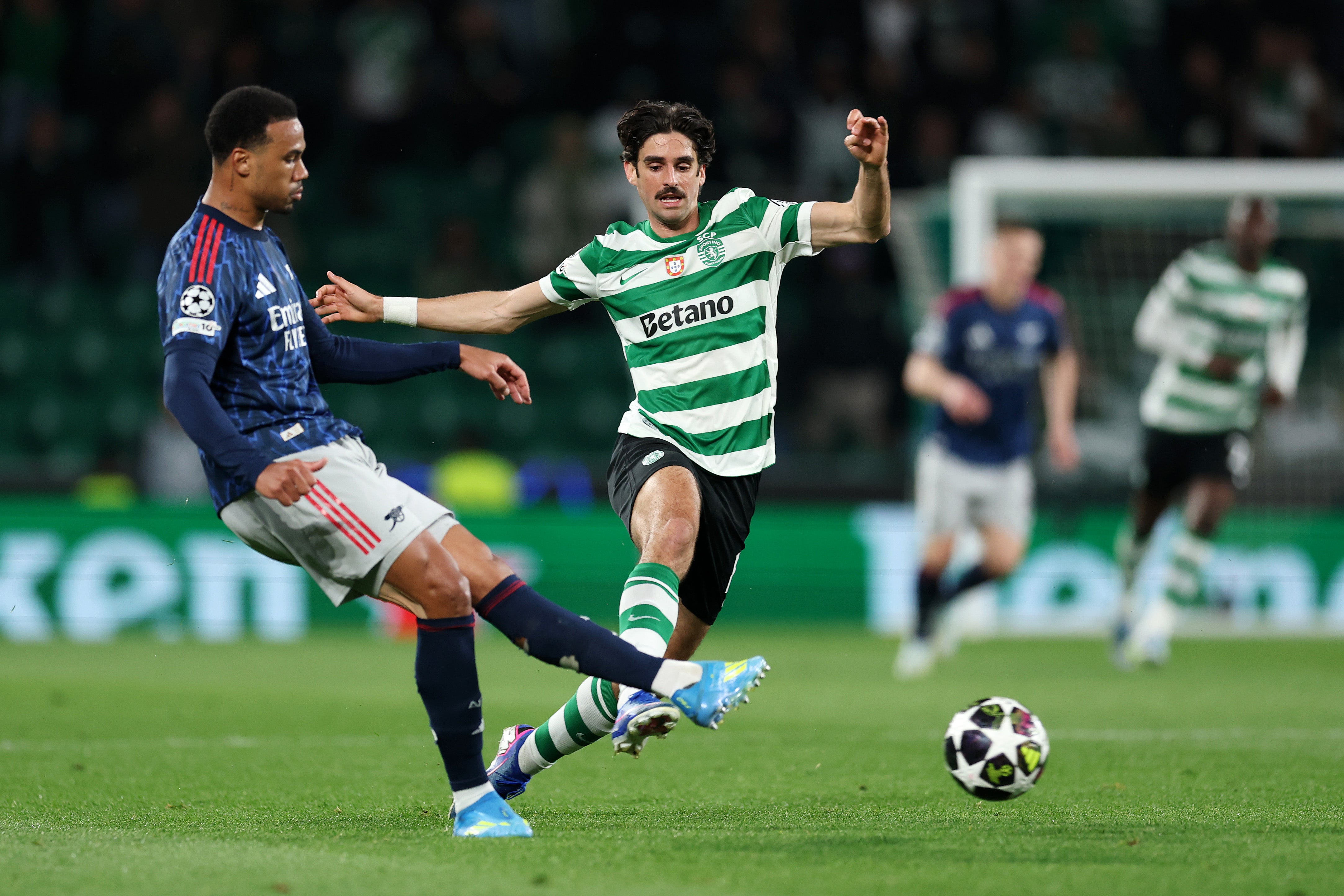 Gabriel Martinelli, Kai Havertz, Gabriel, Bukayo Saka and Leandro Trossard scored for the visitors, Goncalo Inácio getting Sporting's sole reply.