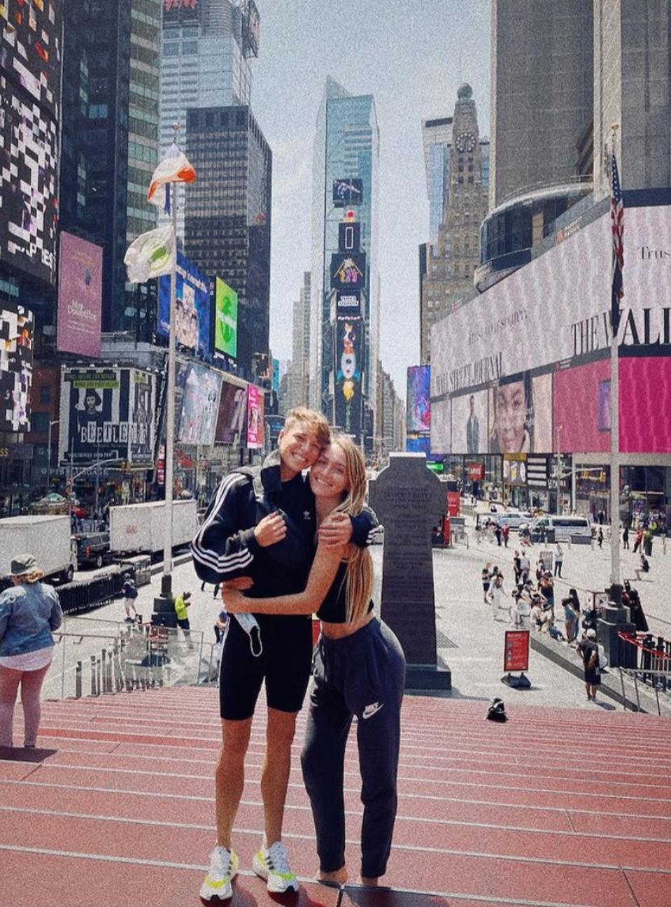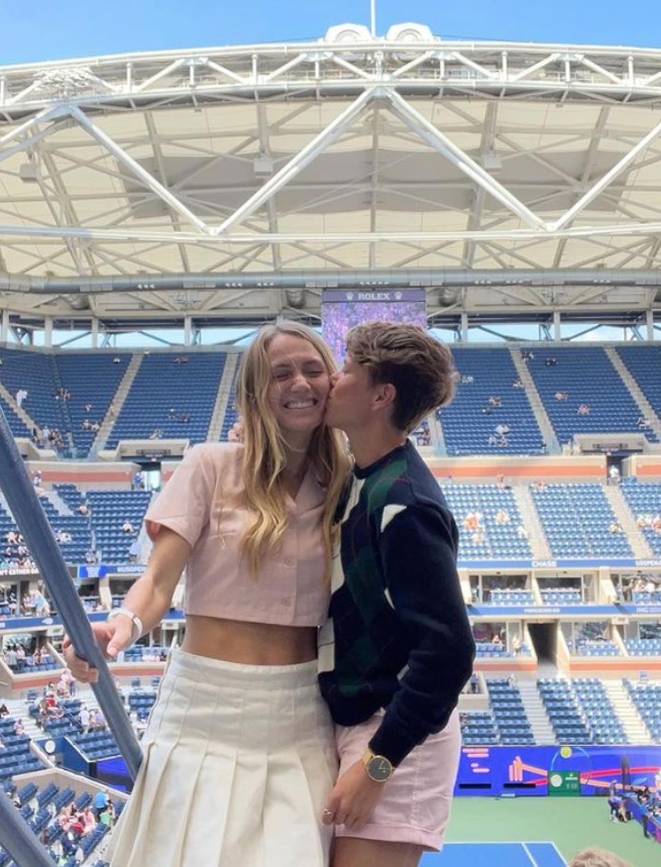 Wherever Hiltz goes, so goes girlfriend Emma Gee. They spent part of their visit to New York City touring Times Square and enjoying tennis at the U.S. Open at the stadium in Queens named for trailblazer Billie Jean King.