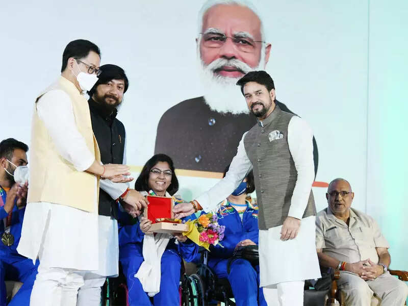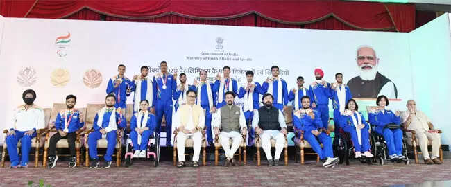 NEW DELHI: Sports Minister Anurag Thakur on Wednesday felicitated India's just-returned Tokyo Paralympics medallists and hoped the country's para athletes would break their record performance in the 2024 Paris edition.