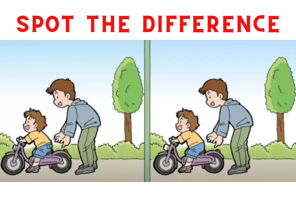 Given below are two otherwise identical looking pictures but they carry some minute differences. In the photos, you can see a little boy learning how to ride the bike with the help of his father. Now your task is to find just 3 differences between the two pictures. Simple right? To make it challenging, we have a time limit! You only have 13 seconds. So before you begin, set the timer to 13 seconds and begin. All the best!