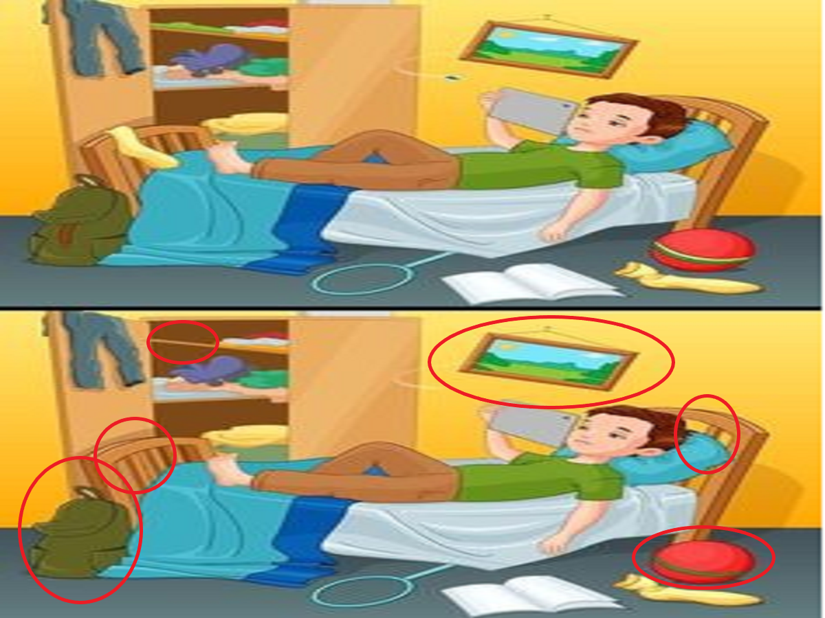 These differences can then be spotted only when one carefully inspects the elements of the picture and closely looks for the differences.