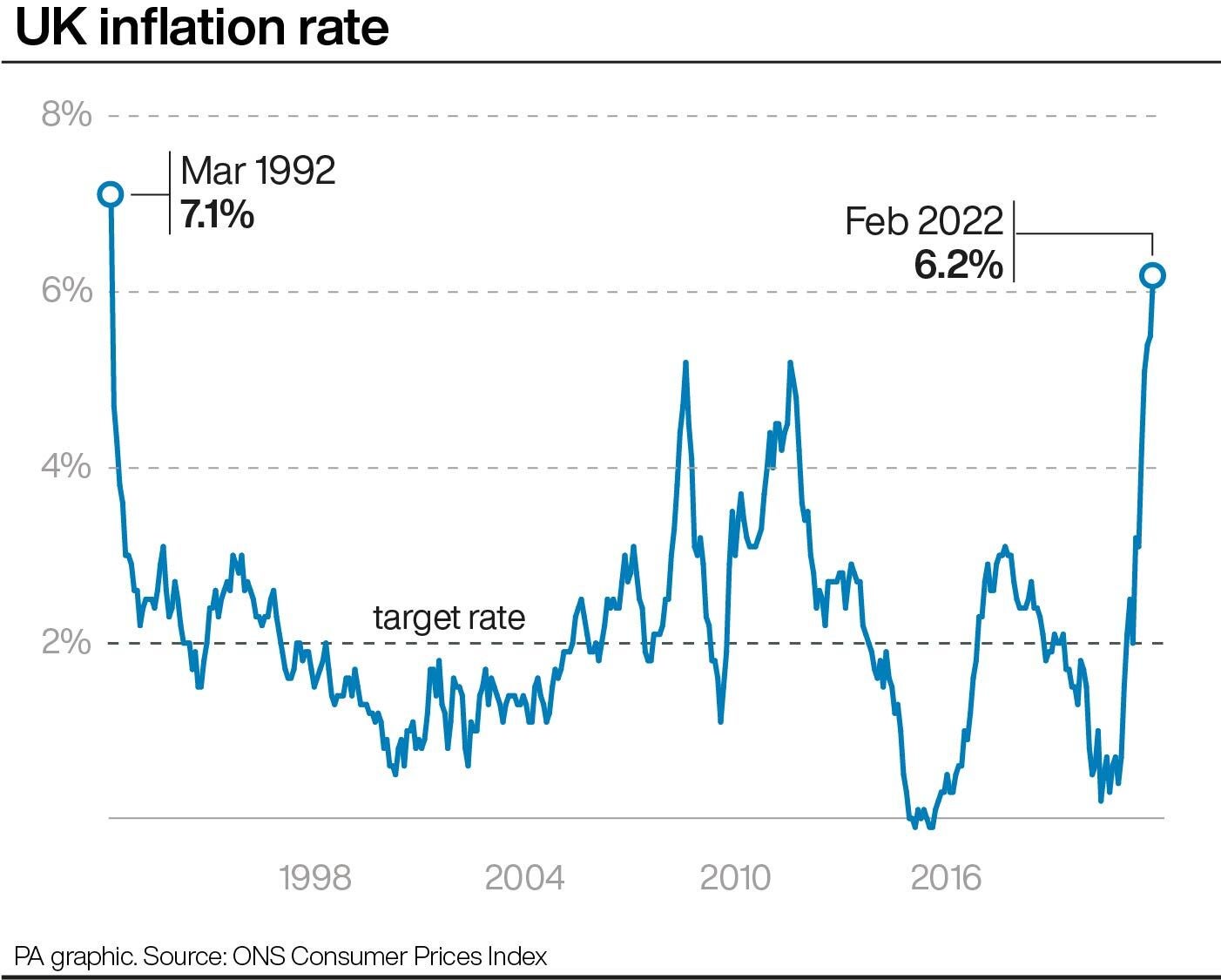 Hours before he stood up in the House of Commons, new figures showed inflation soared to a 30-year high of 6.2% in the 12 months to February.