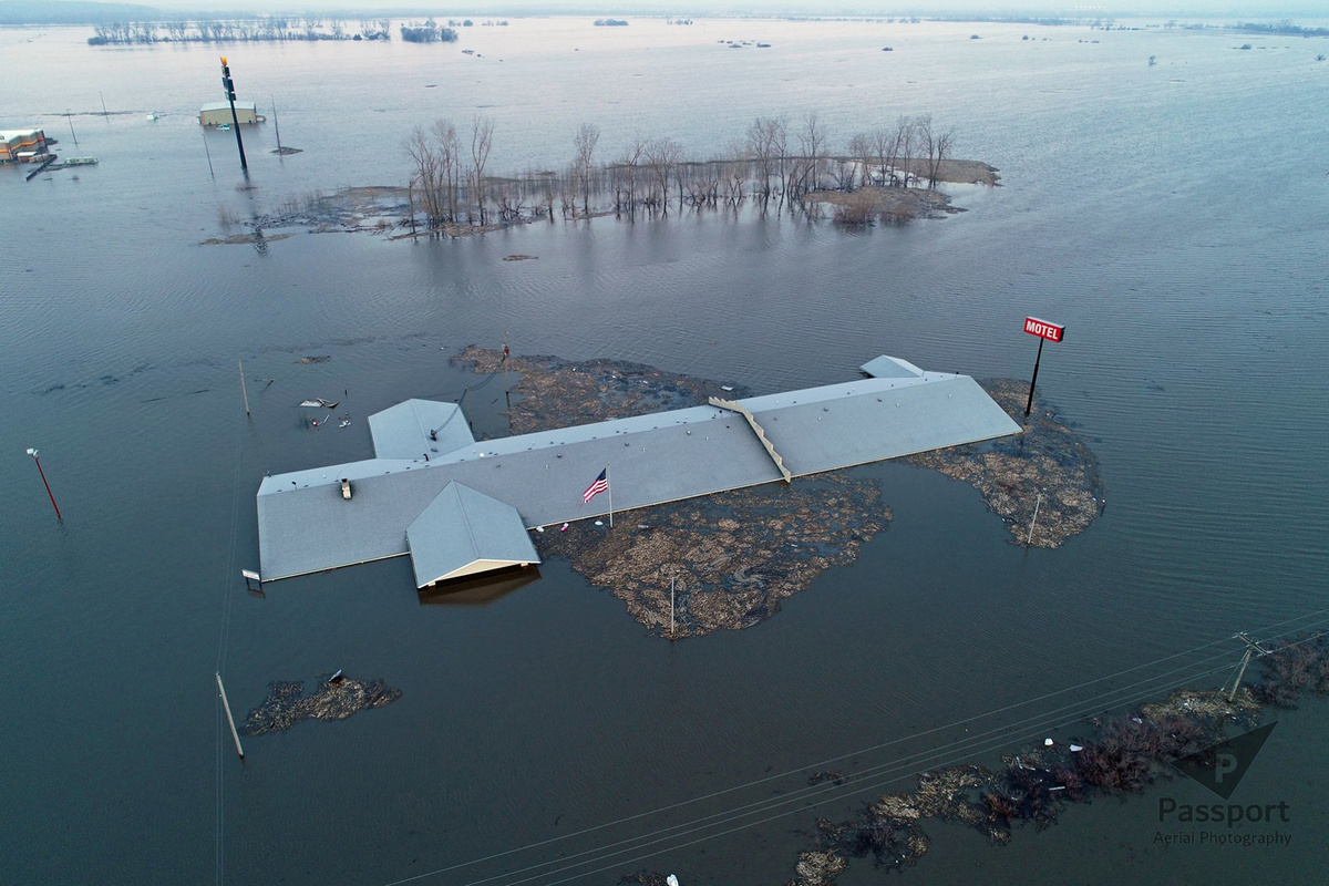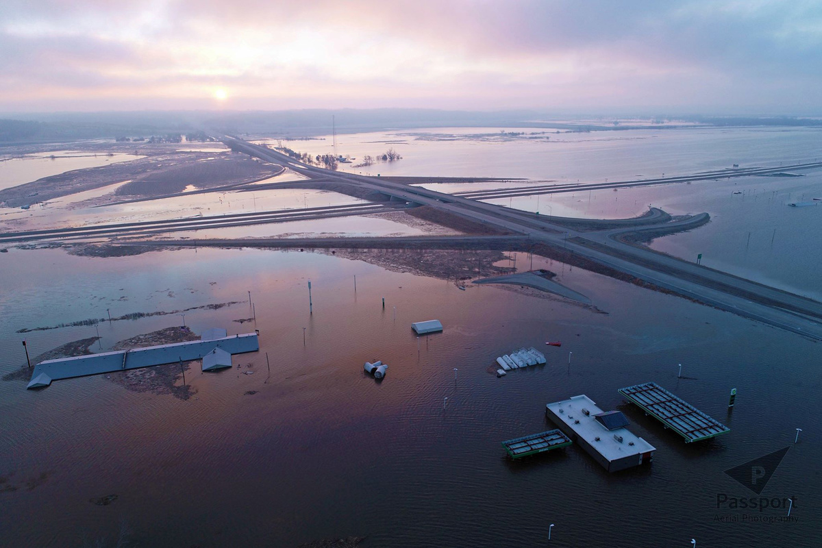The Missouri River, the longest in North America, has flooded much of Nebraska between Omaha and Kansas City at the Missouri state line.