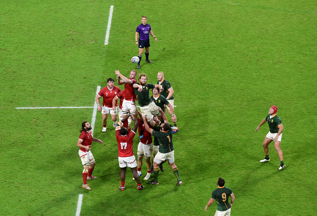 The Springboks ran in six tries in the first half hour at Kobe Misaki Stadium, and Canada's woes deepened a couple of minutes before halftime when replacement lock Josh Larsen was shown a red card for an illegal shoulder charge at a ruck.