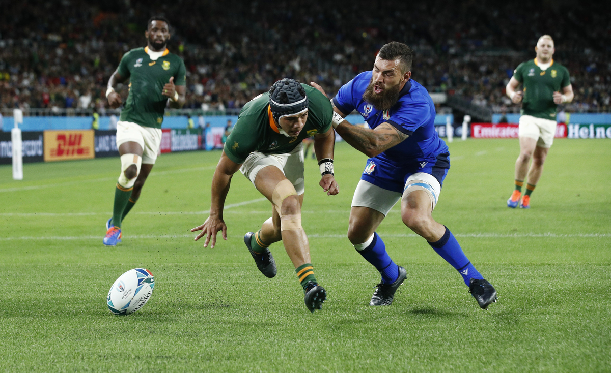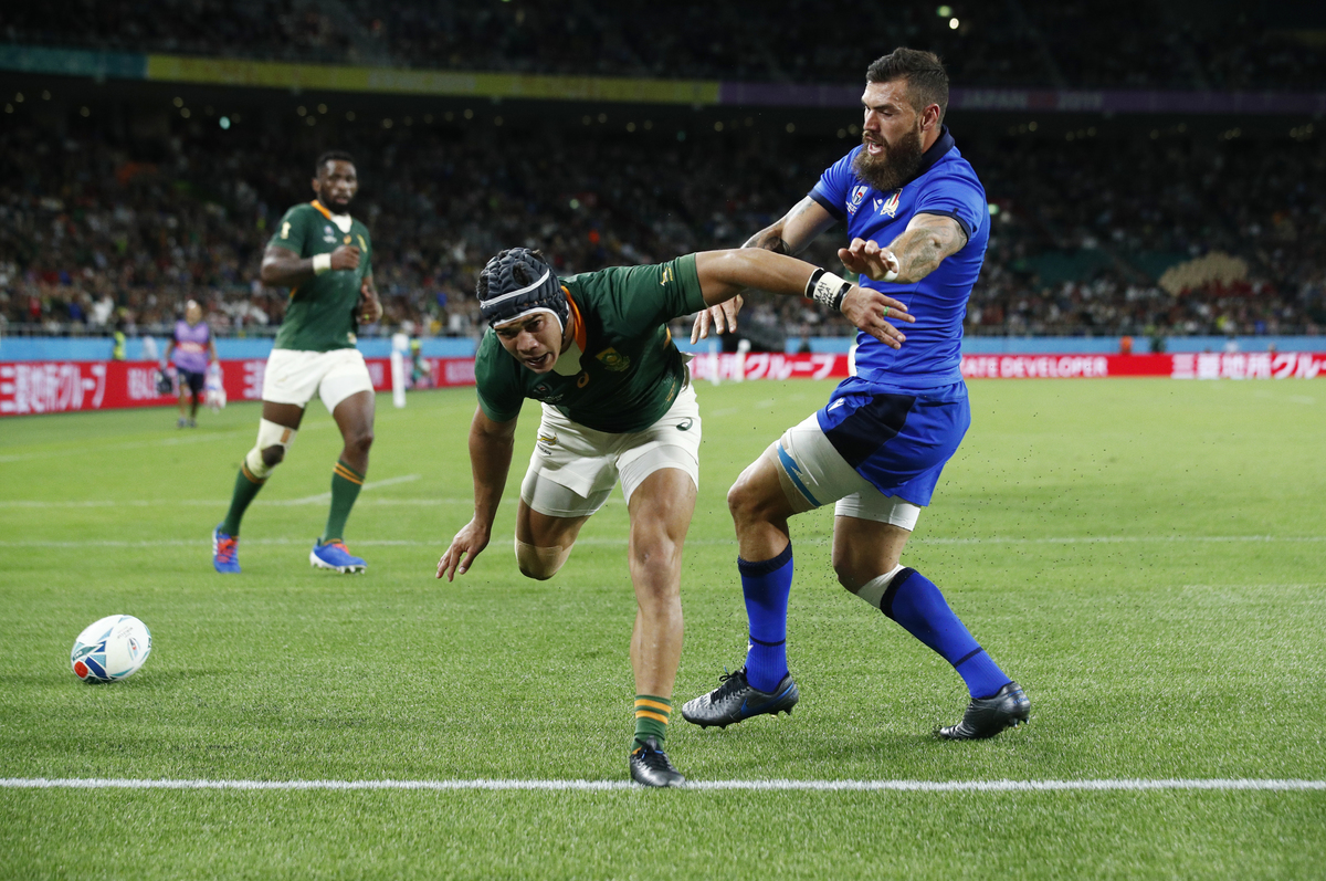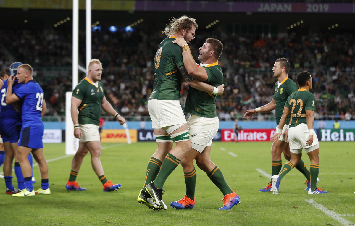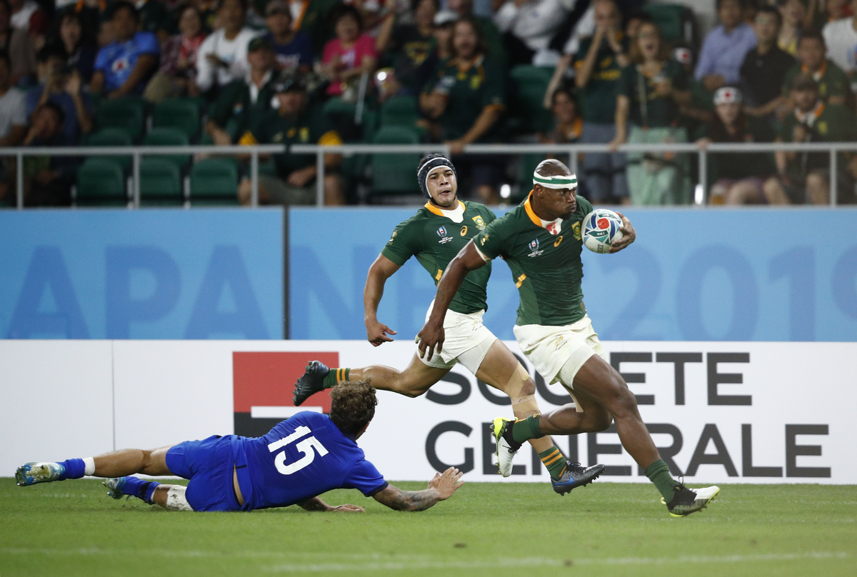 The ever-dangerous Cheslin Kolbe scored a try in each half and Bongi Mbonambi, Lukhanyo Am, Makazole Mapimpi, RG Snyman and Malcolm Marx also crossed to comfortably earn the twice World Cup winners a bonus point.