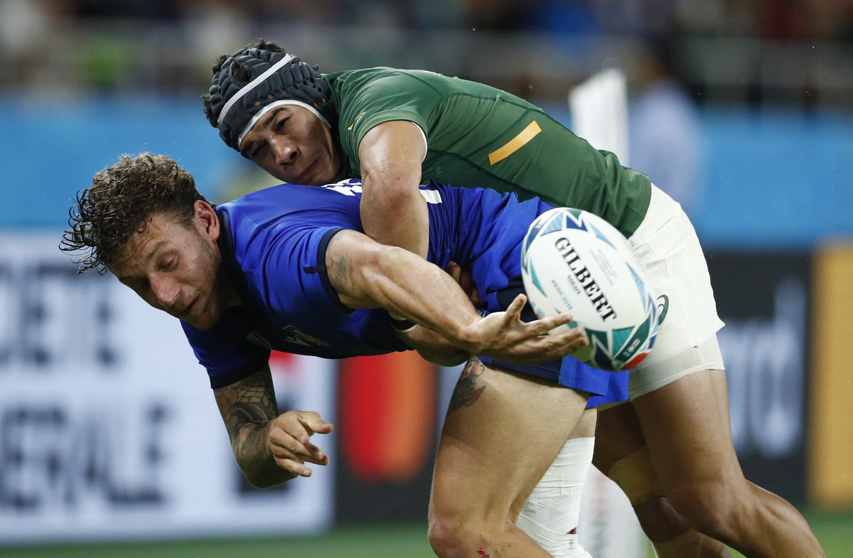 FUKUROI CITY, Japan (Reuters) - South Africa ramped up the physicality to crush an Italy side reduced to 14 men for most of the second half 49-3 on Friday, moving above the Italians and New Zealand to the top of Rugby World Cup Pool B in the process.