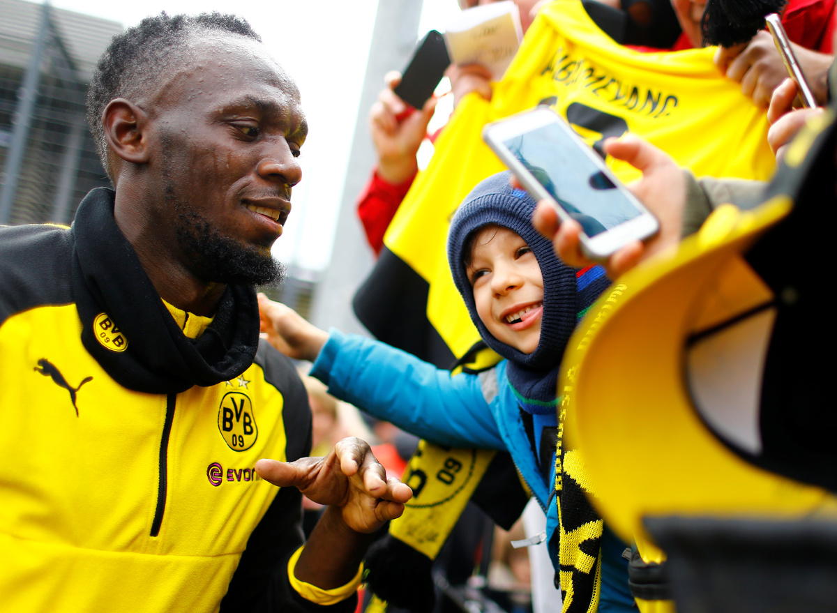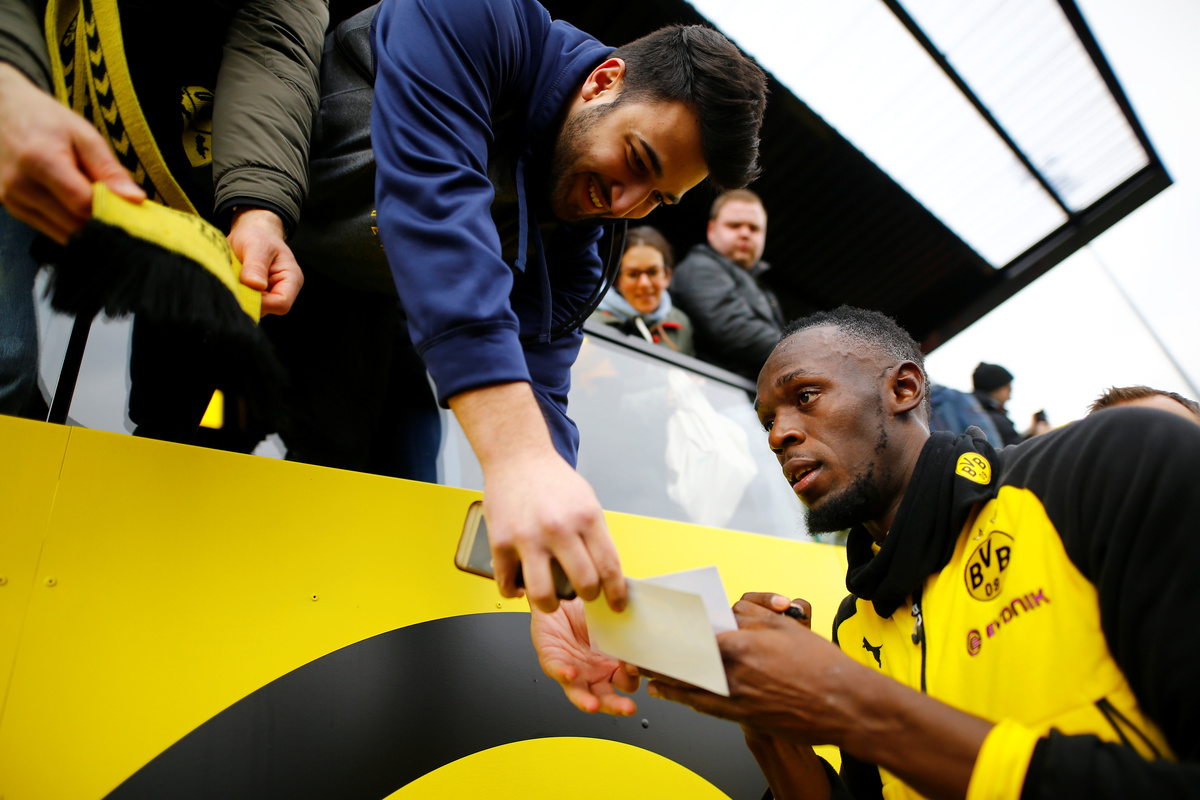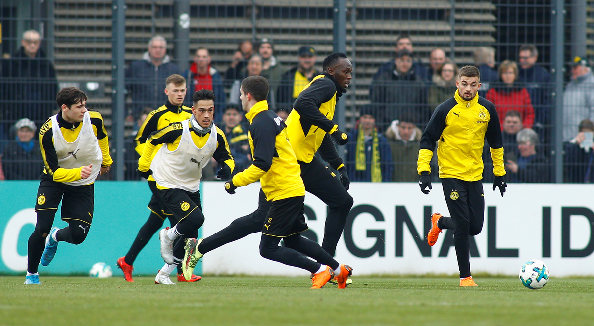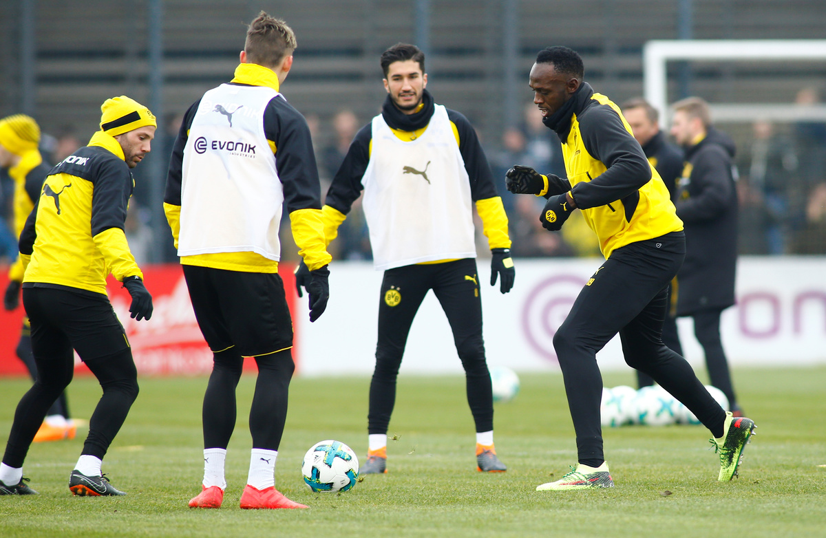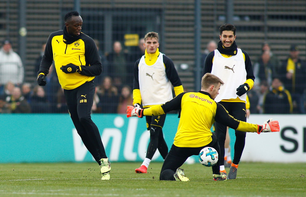 Soccer Football - Usain Bolt participates in a training session with Borussia Dortmund - Strobelallee Training Centre, Dortmund, Germany - March 23, 2018 Usain Bolt during Borussia Dortmund training REUTERS/Thilo SchmuelgenSoccer Football - Usain Bolt participates in a training session with Borussia Dortmund - Strobelallee Training Centre, Dortmund, Germany - March 23, 2018 Usain Bolt during Borussia Dortmund training REUTERS/Thilo SchmuelgenSoccer Football - Usain Bolt participates in a training session with Borussia Dortmund - Strobelallee Training Centre, Dortmund, Germany - March 23, 2018 Usain Bolt during Borussia Dortmund training REUTERS/Thilo SchmuelgenSoccer Football - Usain Bolt participates in a training session with Borussia Dortmund - Strobelallee Training Centre, Dortmund, Germany - March 23, 2018 Borussia Dortmund's Nuri Sahin and Usain Bolt during training REUTERS/Thilo SchmuelgenSoccer Football - Usain Bolt participates in a training session with Borussia Dortmund - Strobelallee Training Centre, Dortmund, Germany - March 23, 2018 Usain Bolt during Borussia Dortmund training REUTERS/Thilo SchmuelgenSoccer Football - Usain Bolt participates in a training session with Borussia Dortmund - Strobelallee Training Centre, Dortmund, Germany - March 23, 2018 Usain Bolt during Borussia Dortmund training REUTERS/Thilo SchmuelgenSoccer Football - Usain Bolt participates in a training session with Borussia Dortmund - Strobelallee Training Centre, Dortmund, Germany - March 23, 2018 Usain Bolt after Borussia Dortmund training REUTERS/Thilo SchmuelgenSoccer Football - Usain Bolt participates in a training session with Borussia Dortmund - Strobelallee Training Centre, Dortmund, Germany - March 23, 2018 Usain Bolt with fans after Borussia Dortmund training REUTERS/Thilo SchmuelgenSoccer Football - Usain Bolt participates in a training session with Borussia Dortmund - Strobelallee Training Centre, Dortmund, Germany - March 23, 2018 Usain Bolt signs autographs for fans after Borussia Dortmund training REUTERS/Thilo SchmuelgenSoccer Football - Usain Bolt participates in a training session with Borussia Dortmund - Strobelallee Training Centre, Dortmund, Germany - March 23, 2018 Usain Bolt signs his autograph for fans after Borussia Dortmund training REUTERS/Thilo SchmuelgenSoccer Football - Usain Bolt participates in a training session with Borussia Dortmund - Strobelallee Training Centre, Dortmund, Germany - March 23, 2018 Usain Bolt signs his autograph for fans after Borussia Dortmund training REUTERS/Thilo SchmuelgenSoccer Football - Usain Bolt participates in a training session with Borussia Dortmund - Strobelallee Training Centre, Dortmund, Germany - March 23, 2018 Usain Bolt during Borussia Dortmund training REUTERS/Thilo Schmuelgen