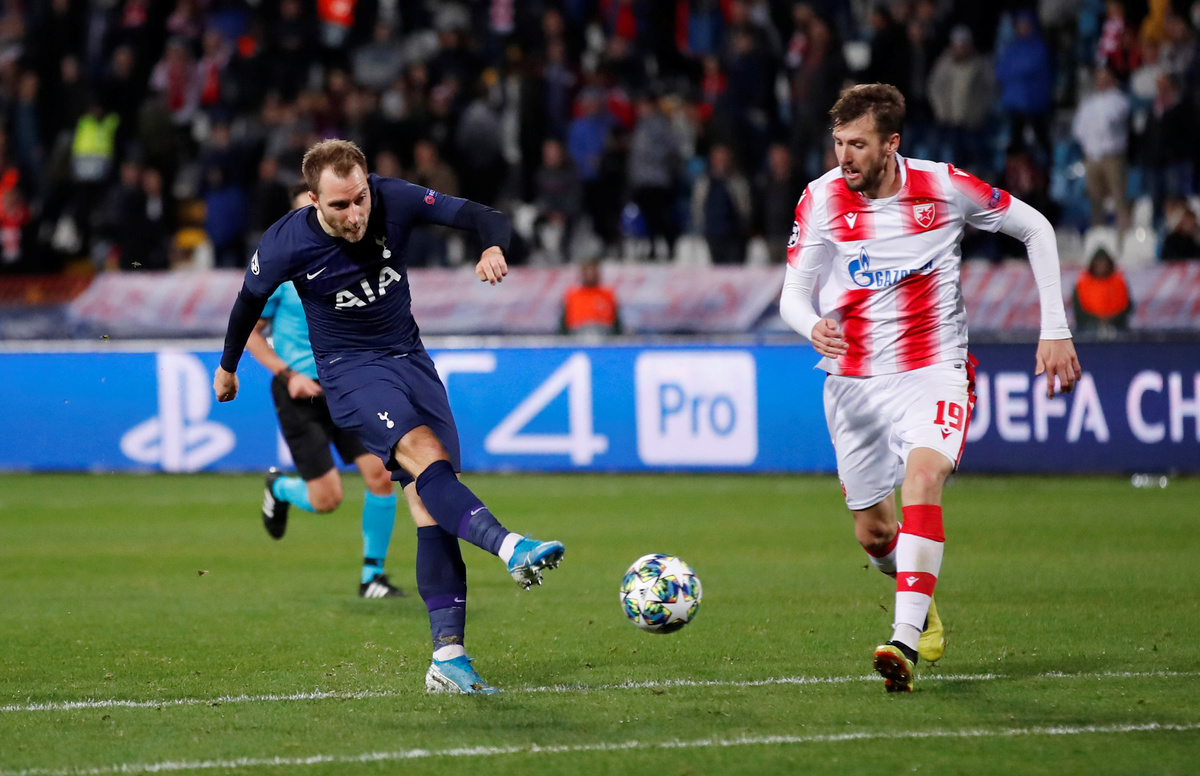BELGRADE (Reuters) - Tottenham Hotspur closed in on a berth in the Champions League knockout stages after two goals from Son Heung-min and one each by Giovani Lo Celso and Christian Eriksen gave them a resounding 4-0 Group B win at Red Star Belgrade on Wednesday.