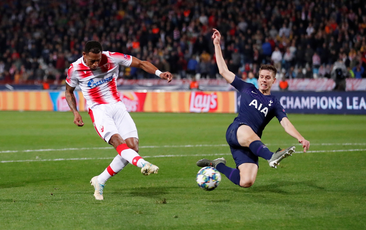 Red Star came closing to equalising on the stroke of halftime in almost identical fashion as Dutch forward Rajiv Van la Parra hit the post and the rebound cannoned off Spurs defender Davinson Sanchez on to the crossbar.