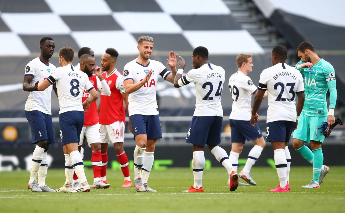 Toby Alderweireld's 81st-minute header sealed a 2-1 victory against Arsenal on Sunday, moving Spurs up to eighth and two points above their north London rivals with three games left.