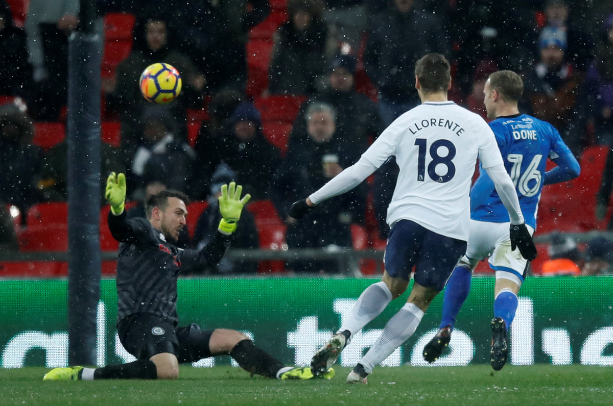 Llorente's second-half treble, a double from Son Heung-min and a late effort from Kyle Walker-Peters in driving snow at a freezing Wembley Stadium settled an game where tensions had threatened to bubble over before the break.