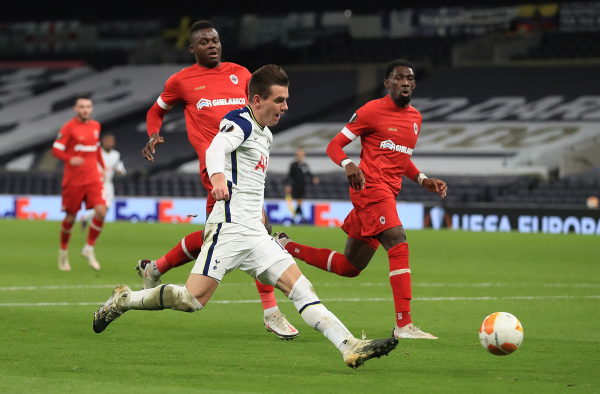 Jose Mourinho's Spurs side had already guaranteed progress but second-half goals by Carlos Vinicius and Giovanni Lo Celso earned a 2-0 win over Royal Antwerp as they leapfrogged the Belgians who had also qualified from Group J.