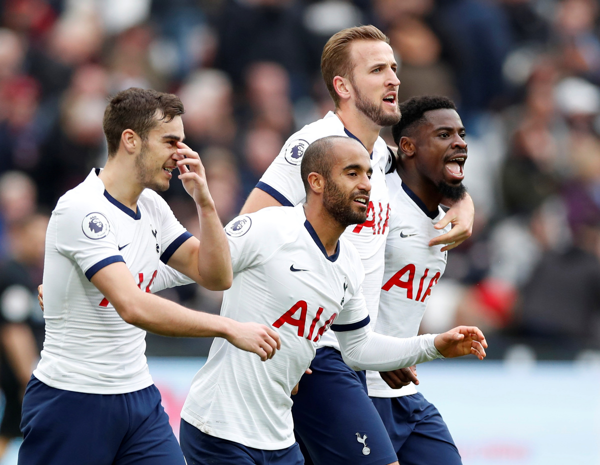 Soccer Football - Premier League - West Ham United v Tottenham Hotspur - London Stadium, London, Britain - November 23, 2019 Tottenham Hotspur's Lucas Moura celebrates scoring their second goal with Harry Winks, Harry Kane and Serge Aurier REUTERS/David Klein
