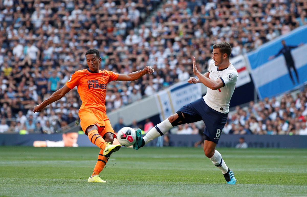 Soccer Football - Premier League - Tottenham Hotspur v Newcastle United - Tottenham Hotspur Stadium, London, Britain - August 25, 2019 Newcastle United's Isaac Hayden in action with Tottenham Hotspur's Harry Winks Action Images via Reuters/John Sibley Soccer Football - Premier League - Tottenham Hotspur v Newcastle United - Tottenham Hotspur Stadium, London, Britain - August 25, 2019 Newcastle United's Miguel Almiron in action Action Images via Reuters/John Sibley Soccer Football - Premier League - Tottenham Hotspur v Newcastle United - Tottenham Hotspur Stadium, London, Britain - August 25, 2019 Newcastle United's Emil Krafth in action with Tottenham Hotspur's Son Heung-min Action Images via Reuters/John Sibley Soccer Football - Premier League - Tottenham Hotspur v Newcastle United - Tottenham Hotspur Stadium, London, Britain - August 25, 2019 Tottenham Hotspur's Harry Kane in action with Newcastle United's Jamaal Lascelles Action Images via Reuters/John Sibley Soccer Football - Premier League - Tottenham Hotspur v Newcastle United - Tottenham Hotspur Stadium, London, Britain - August 25, 2019 Tottenham Hotspur's Harry Kane in action with Newcastle United's Jamaal Lascelles Action Images via Reuters/John Sibley Soccer Football - Premier League - Tottenham Hotspur v Newcastle United - Tottenham Hotspur Stadium, London, Britain - August 25, 2019 Newcastle United's Joelinton in action with Tottenham Hotspur's Harry Winks and Davinson Sanchez REUTERS/Peter Nicholls Soccer Football - Premier League - Tottenham Hotspur v Newcastle United - Tottenham Hotspur Stadium, London, Britain - August 25, 2019 Tottenham Hotspur's Danny Rose in action with Newcastle United's Miguel Almiron Action Images via Reuters/John Sibley Soccer Football - Premier League - Tottenham Hotspur v Newcastle United - Tottenham Hotspur Stadium, London, Britain - August 25, 2019 Newcastle United's Matt Ritchie in action with Tottenham Hotspur's Moussa Sissoko Action Images via Reuters/John Sibley Soccer Football - Premier League - Tottenham Hotspur v Newcastle United - Tottenham Hotspur Stadium, London, Britain - August 25, 2019 Tottenham Hotspur's Moussa Sissoko in action with Newcastle United's Matt Ritchie Action Images via Reuters/John Sibley