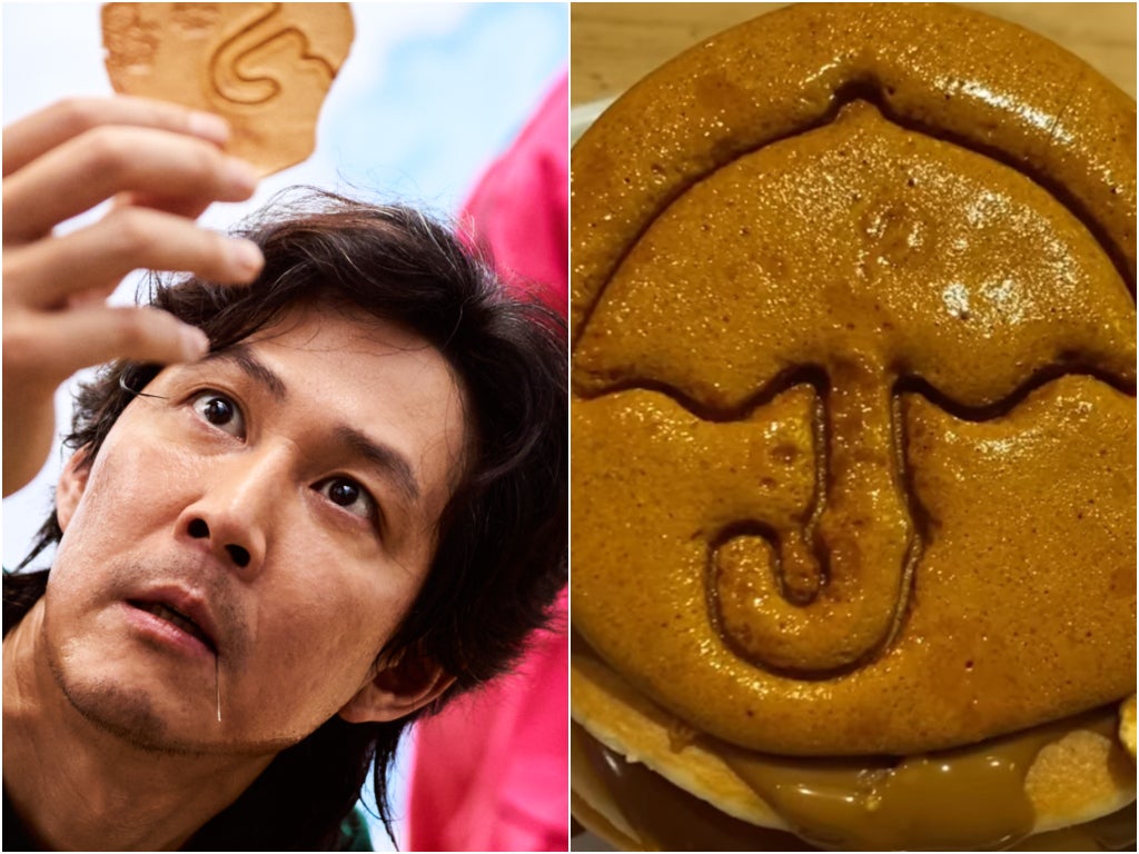 Diners are given a stack of pancakes, topped with a honeycomb resembling those seen in Squid Game. They must then extract the shape using only their knife, in order to receive the meal for free.