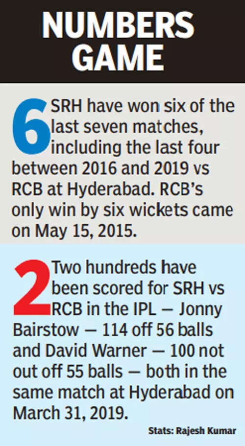 Though none of them figure at the top of the Purple Cap charts, the SRH bowling unit fared better than their batters. But RCB would want to seize the opportunity against a deflated SRH and fancy their chances of surging ahead of Mumbai in the table with a win.