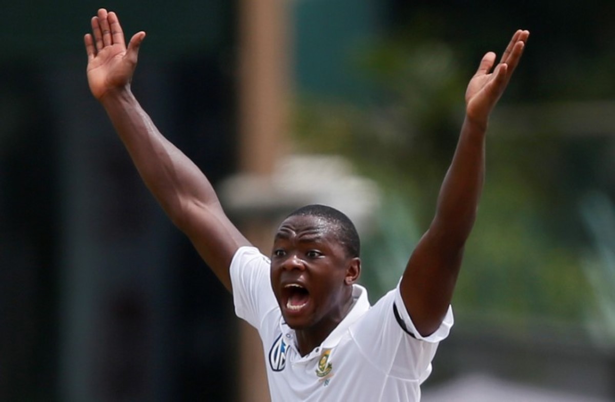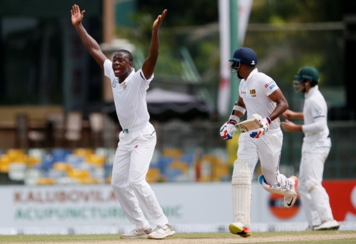 Cricket - Sri Lanka v South Africa -Second Test Match - Colombo, Sri Lanka - July 20, 2018 - South Africa's Kagiso Rabada (L) appeals for an unsuccesful LBW wicket for Sri Lanka's Danushka Gunathilaka (C). REUTERS/Dinuka Liyanawatte