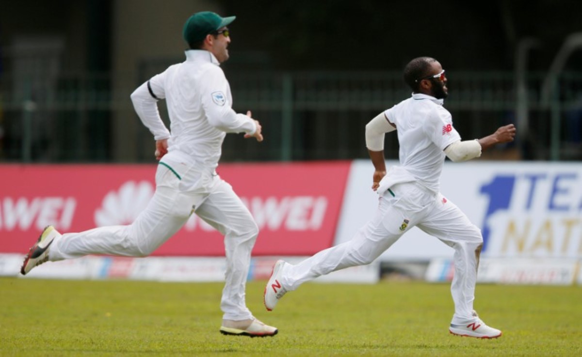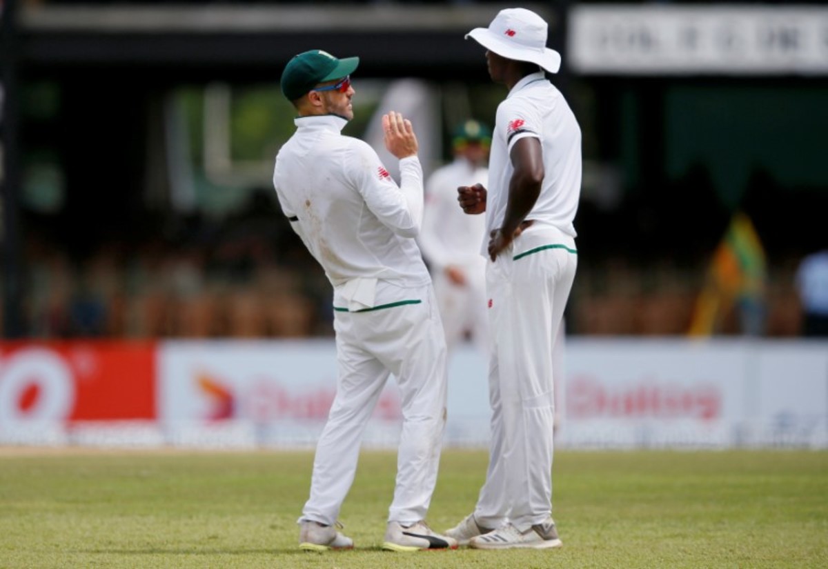 Cricket - Sri Lanka v South Africa -Second Test Match - Colombo, Sri Lanka - July 20, 2018 - South Africa's Temba Bavuma (R) and Dean Elgar run to stop the ball hit by Sri Lanka's Danushka Gunathilaka (not pictured). REUTERS/Dinuka LiyanawatteCricket - Sri Lanka v South Africa -Second Test Match - Colombo, Sri Lanka - July 20, 2018 - South Africa's captain Faf du Plessis (L) reacts as he talks to his teammate Kagiso Rabada. REUTERS/Dinuka LiyanawatteCricket - Sri Lanka v South Africa -Second Test Match - Colombo, Sri Lanka - July 20, 2018 - South Africa's Kagiso Rabada appeals for an unsuccesful LBW wicket for Sri Lanka's Danushka Gunathilaka (not pictured). REUTERS/Dinuka LiyanawatteCricket - Sri Lanka v South Africa - Second Test Match - Colombo, Sri Lanka - July 20, 2018 - Sri Lanka's Danushka Gunathilaka avoids a bouncer bowl by South Africa's Kagiso Rabada (not pictured). REUTERS/Dinuka LiyanawatteCricket - Sri Lanka v South Africa -Second Test Match - Colombo, Sri Lanka - July 20, 2018 - Sri Lanka's Dimuth Karunaratne hits a boundary. REUTERS/Dinuka LiyanawatteCricket - Sri Lanka v South Africa -Second Test Match - Colombo, Sri Lanka - July 20, 2018 - Sri Lanka's Dimuth Karunaratne tries to avoid the ball hitting on him while running between wickets. REUTERS/Dinuka Liyanawatte