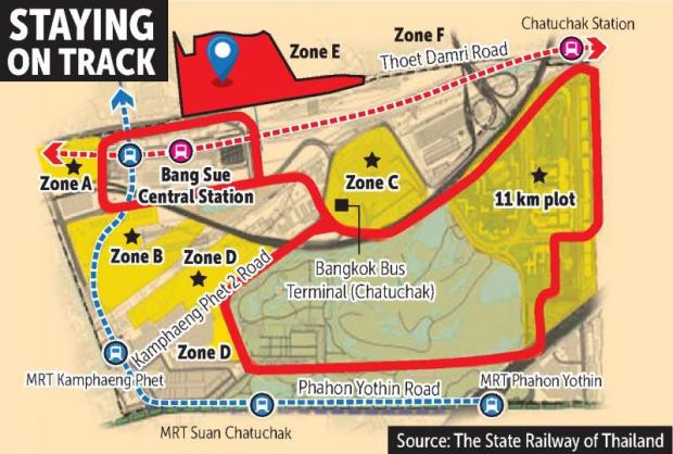 Regarding other zones subject to bids, the SRT's consultants suggested a 270-rai land plot east of the station, called "KM 11", to be included in the options.