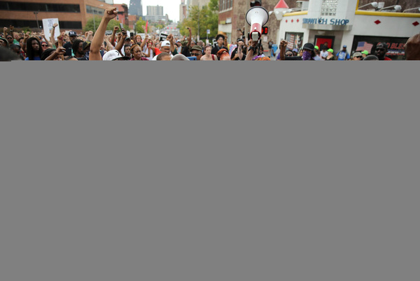 By early evening, protesters had moved from downtown and gathered in the Central West End. They filled the streets there as they marched through the neighborhood, their number growing to what appeared to be more than 1,000. At one point, they tried to enter Forest Park but were stopped by police. By nightfall, protesters were marching south some chanting: "If you kill our kids, we kill your economy!"