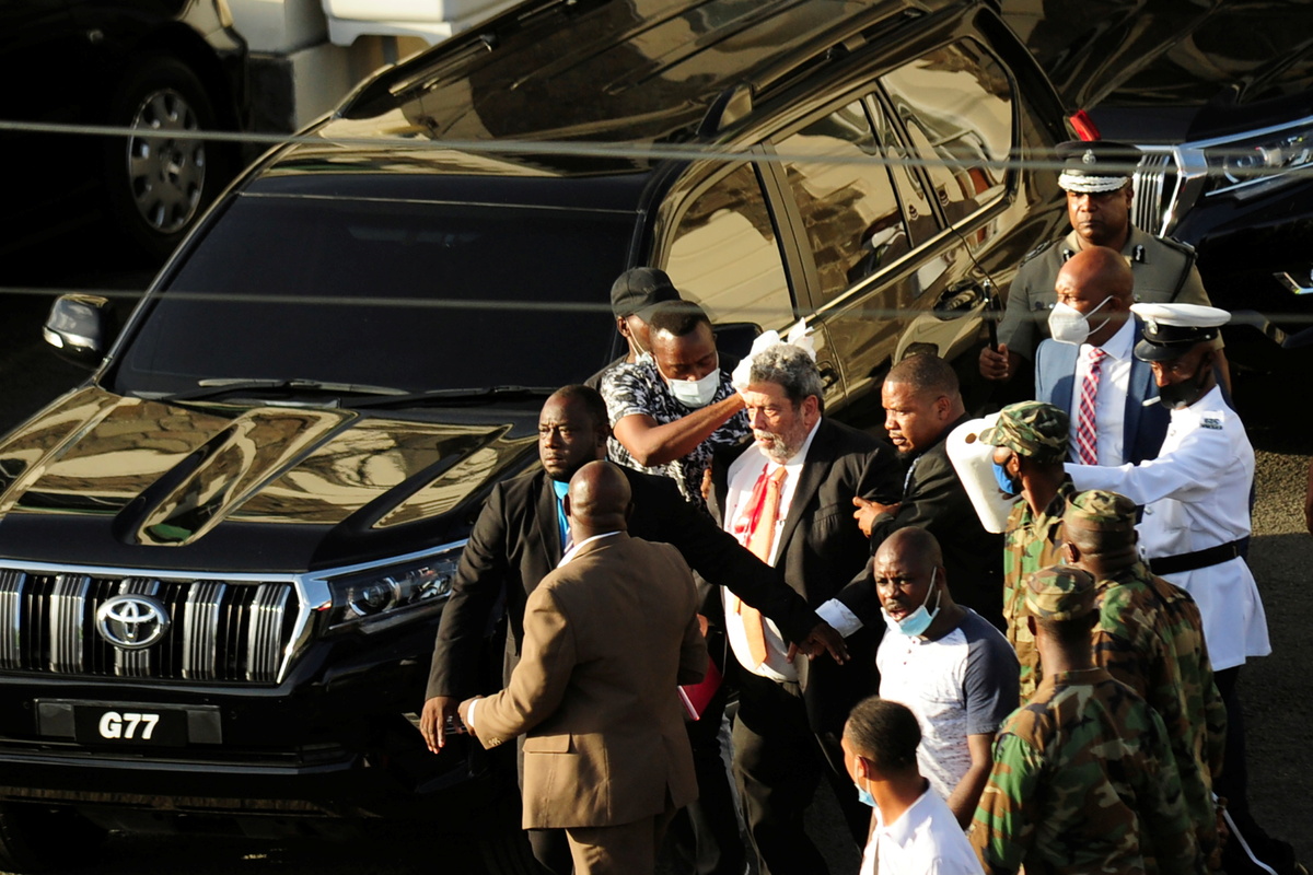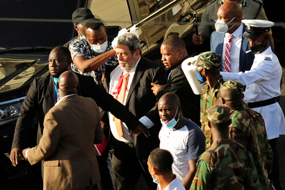 The incident took place as Gonsalves, 74, had been returning to a Parliament session where lawmakers were discussing a public health reform that would require most frontline workers to be vaccinated against the coronavirus.