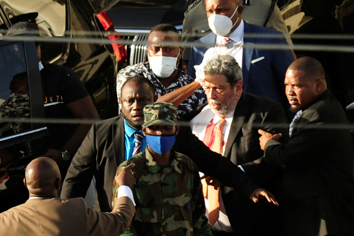 Gonsalves' office said he had been "bleeding profusely" and taken to hospital.