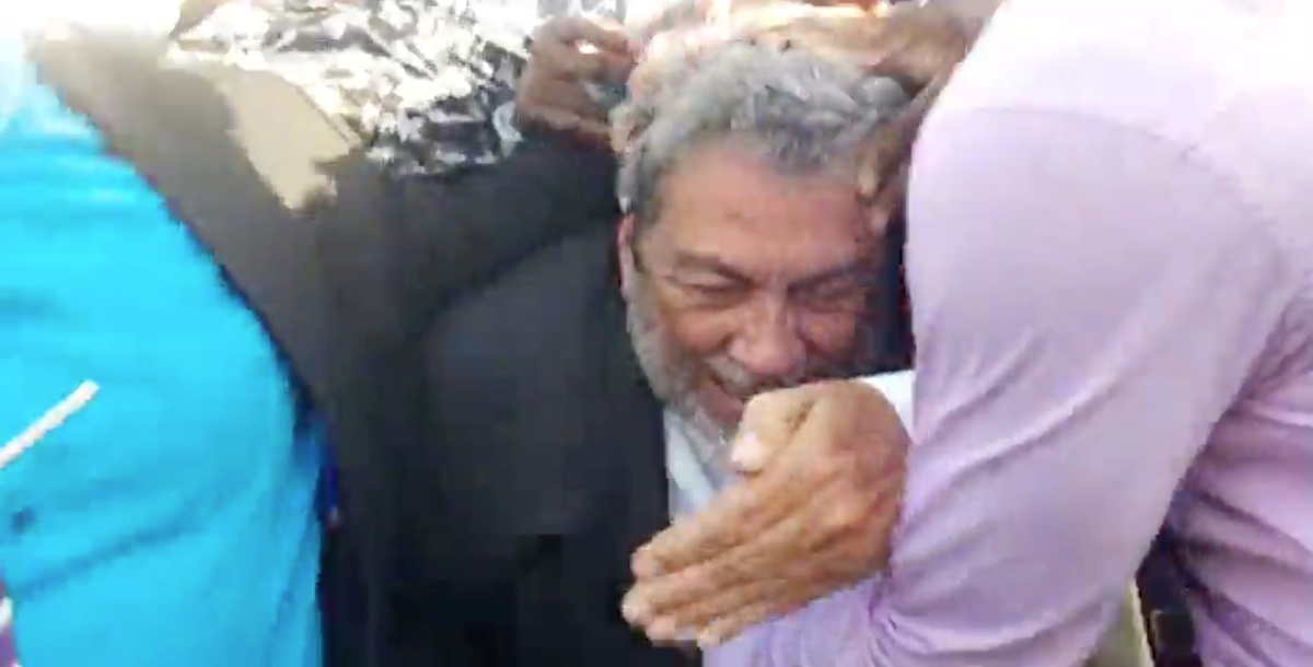 The 74-year-old premier of the Caribbean country was attacked as he walked through a group of about 200 protesters to get into parliament.