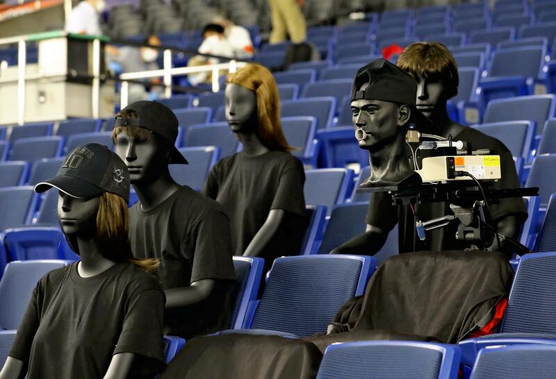 The team placed mannequins in the seats behind the net. One of them was equipped to blow liquid from its mouth to simulate cough or sneeze droplets. Researchers conducted the experiment under a variety of conditions, such as whether or not masks were worn.