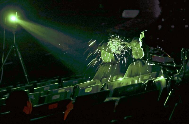 A laser beam was shone on the area where the synthetic spectators were seated, and a high-performance camera captured the movement of the airborne particles.