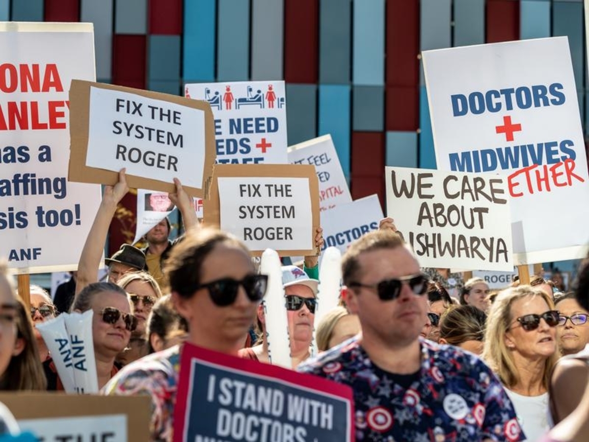The Australian Medical Association and Australian Nurses Federation organised Tuesday's protest calling for improved conditions and support.