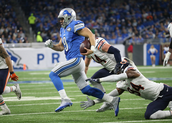 The Lions won for the ninth time this season in come-from-behind fashion Sunday as Matthew Stafford scored on a 7-yard touchdown run with 3:17 to play to beat the Chicago Bears, 20-17.
