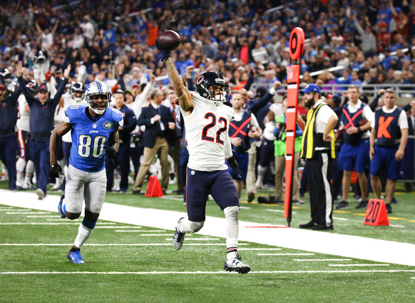 Cre'Von LeBlanc jumped an out route to Anquan Boldin with just over 7 minutes to play and returned the turnover untouched down the sideline to give the Bears a 17-13 lead.