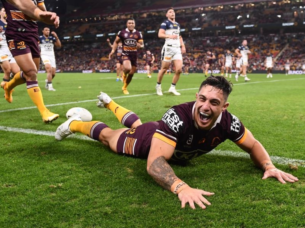 The star centre crossed for a double in the Broncos' 37-18 win but left the game with four minutes to play.