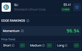 With momentum in the 96th percentile, Benzinga’s Edge Stock Rankings show that SLI has a positive price trend across all time frames. Here's how the stock performs on other key metrics.