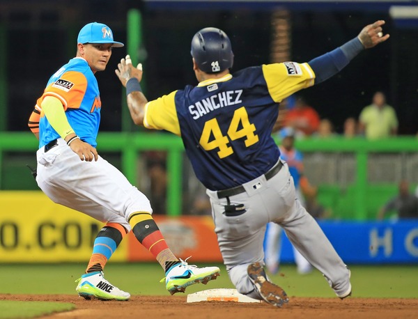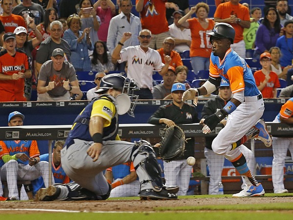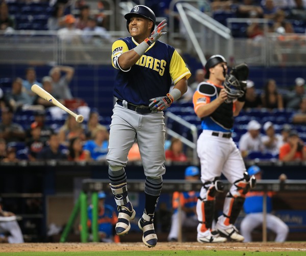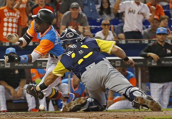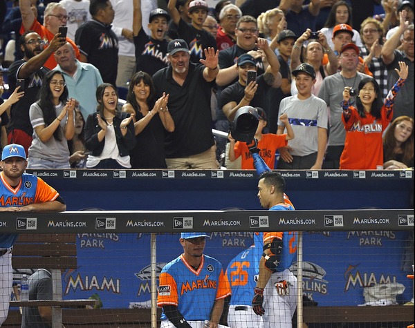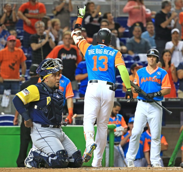 Friday he connected twice for the ninth time this season, including his hardest-hit of 2017, in the Marlins' 8-6 win against the Padres at Marlins Park.