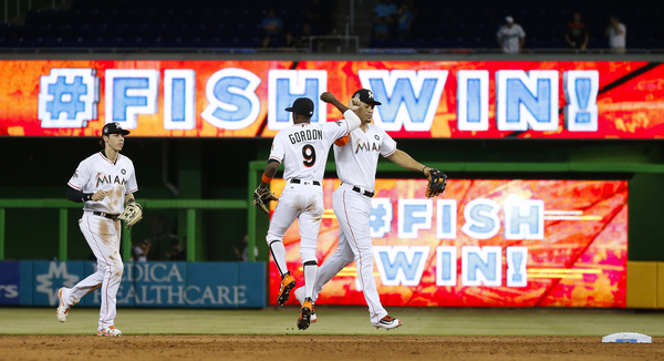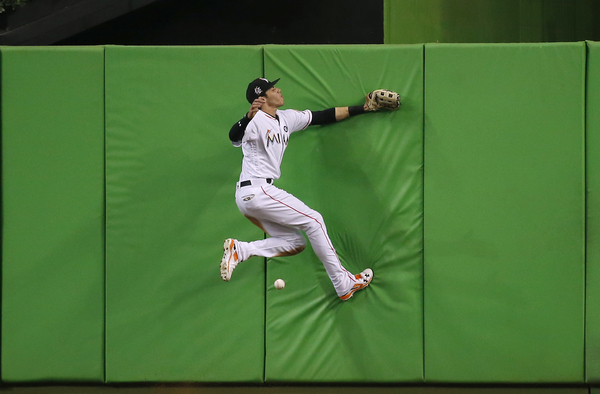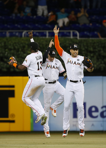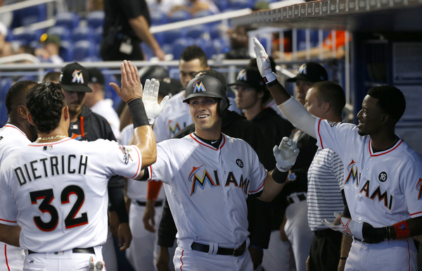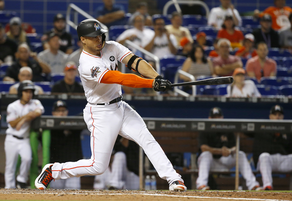 Before Stanton, Dee Gordon slapped a run-scoring single to left. After Stanton, J.T. Realmuto doubled to right-center to score Christian Yelich, who had reached on a soft grounder toward shortstop.