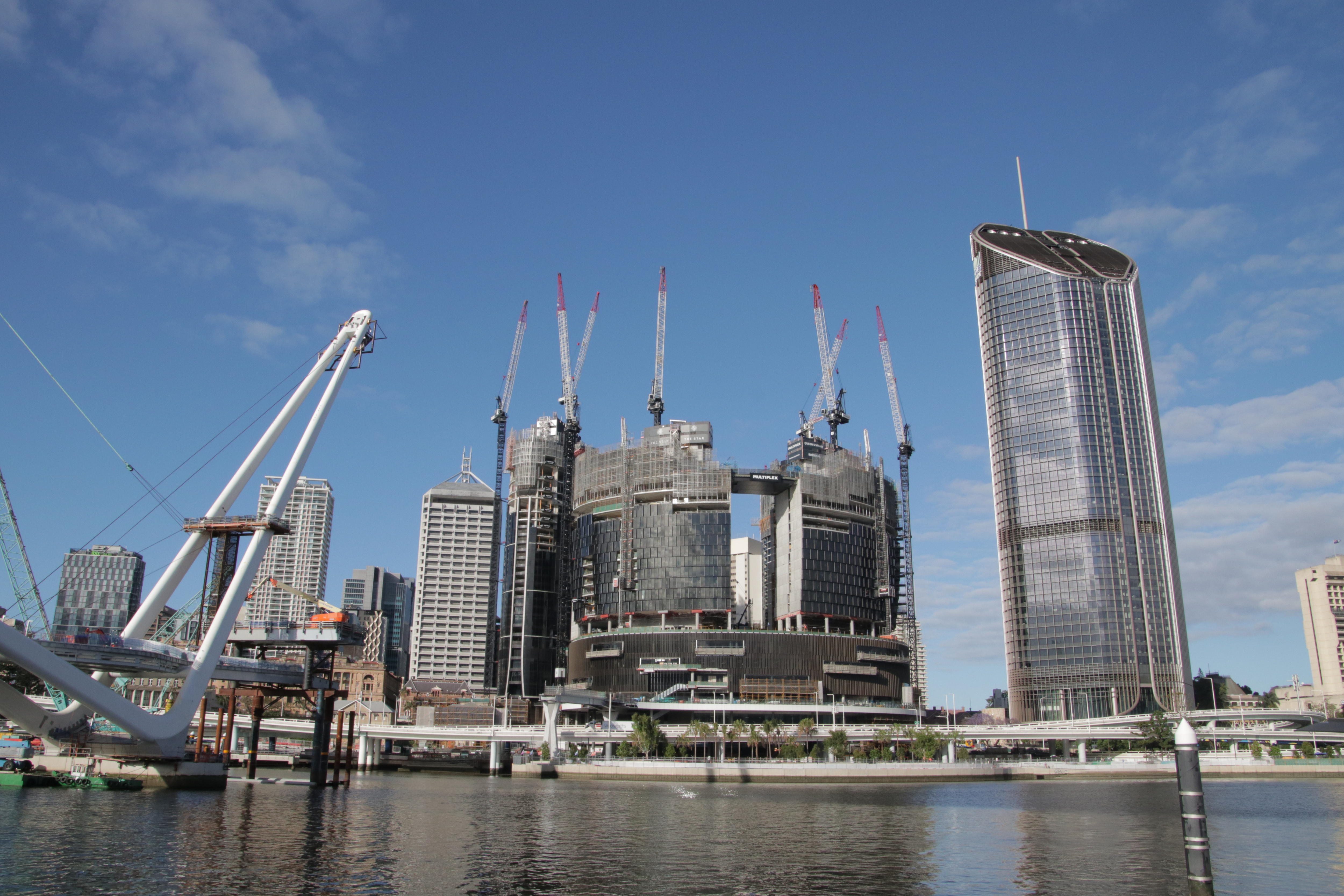 The development's sky deck, which will sit 100 metres above the Brisbane River, will likely be craned in to place next month.