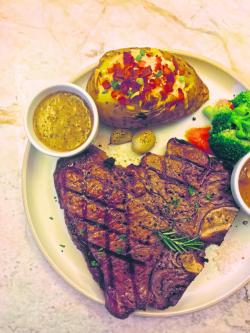 And now to the main event: the steaks. A lot of people make a big fuss about using imported products but it's rarely any different than local ones. However, the resto's boast of shipping their beef from the US chilled and not frozen does wonders for the beef. It's also commonplace to eat steaks -- or a sorry excuse of a steak -- all around the city that are very thin and not very tasty. That's not the case at The U.S. Steakhouse. Their 500g Ribeye (B1,770++) and 600g T-bone (B1,880++) are both a sight to behold when laid in front of you. The thick, succulent beef cooked to medium rare perfection is not only aesthetically appealing but juicy and tasty to the bite even if it's sans sauce. You also get your choice of side dish and sauce with every order of steak. Whatever you choose to go with will still partner great with your humongous steak. Oh, and if it's not that clear from the pictures, the size of these steaks are not like the steaks you eat at commercial joints. Plus, if you compare it with other places that serve up similar steaks, you actually get more value for your money what with size and taste that you get.