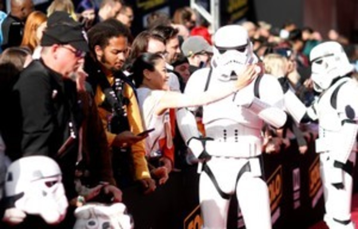 A fan takes a selfie with a Stormtrooper at the premiere for the movie "Solo: A Star Wars Story" in Los Angeles, California, U.S., May 10, 2018. REUTERS/Mario Anzuoni