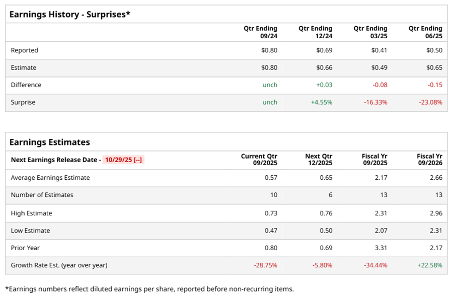 Seattle, Washington-based Starbucks Corporation (SBUX) roasts, sells and distributes high-quality coffee globally. Valued at $90.7 billion by market cap, the company offers packaged and single-serve coffees and teas, beverage-related ingredients, and ready-to-drink beverages, as well as produces and sells bottled coffee drinks and a line of ice creams through over 40,000 stores worldwide under the brands Starbucks Coffee, Teavana, Seattle's Best Coffee, Ethos, and Starbucks Reserve. The coffee giant is expected to announce its fiscal fourth-quarter earnings for 2025 in the near future.