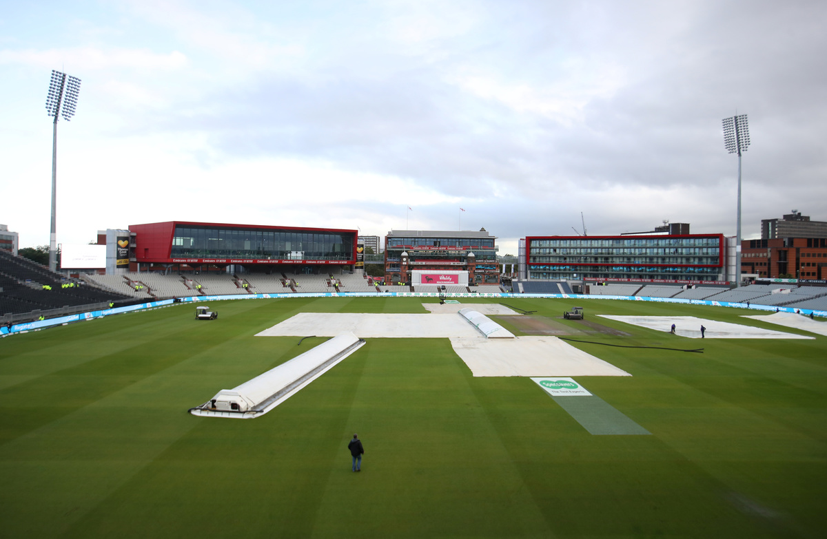 He brought up his fifty, lavishly driving Ben Stokes for four through cover but the Manchester weather ensured the prospect of a third ton in the series will have to wait.