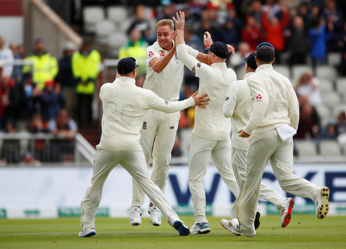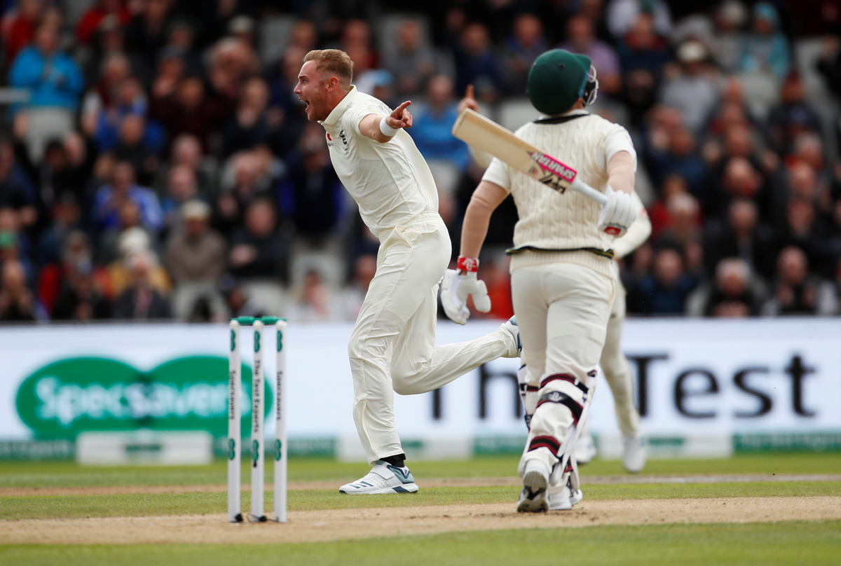 Stuart Broad claimed the wicket of David Warner for the fifth time in this series with the left-hander caught behind as he made a belated decision to leave the ball but gave a thin outside edge to Jonny Bairstow.