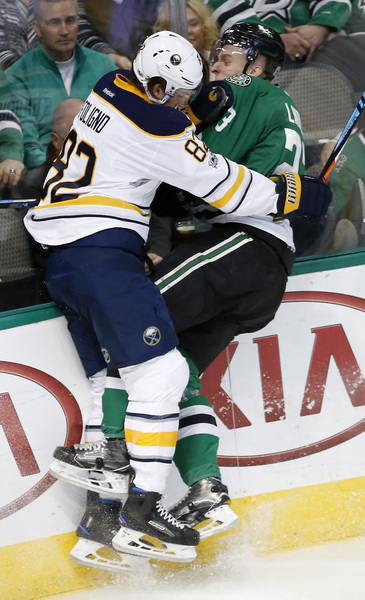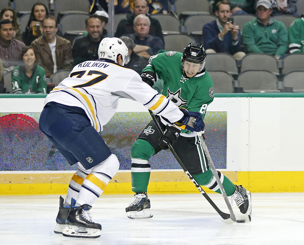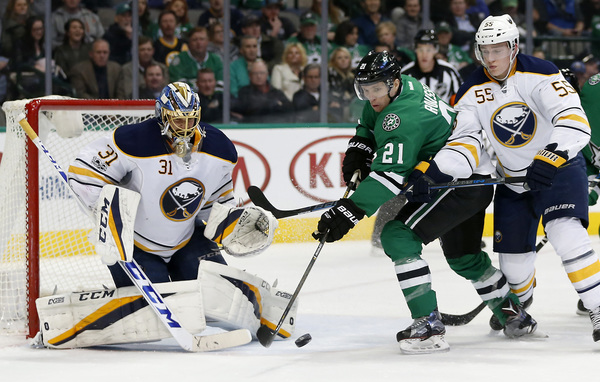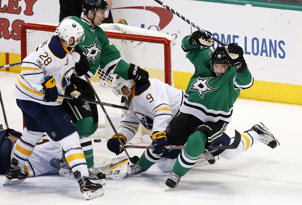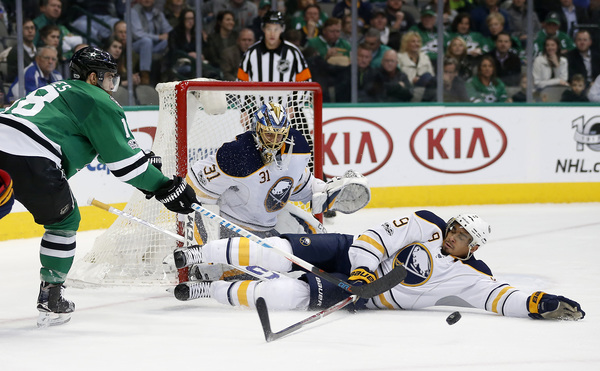 Dallas allowed the first goal for the seventh straight game and was down 2-0 10 minutes into the game. Buffalo's Evander Kane sizzled a shot through starter Antti Niemi and then Matt Moulson stepped out and shoveled in a shot that Niemi probably should have stopped.